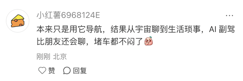 “本来过年返程堵在高速上,越堵越心烦,唾手叫醒了百度舆图的AI副驾,随口问了句‘东说念主类能登火星吗’,没预料它确切能跟我聊半天。”用户梁先陌生享了我方的使用体验。他坦言,蓝本仅仅抱着碰红运的心态叫醒AI副驾,没预料不仅能精确导航,非论是冷门的百科知识,仍是随口吐槽的家常,致使是“机器东说念主会不会拿枪”这种脑洞打开的问题,它王人能接得住、聊得透。